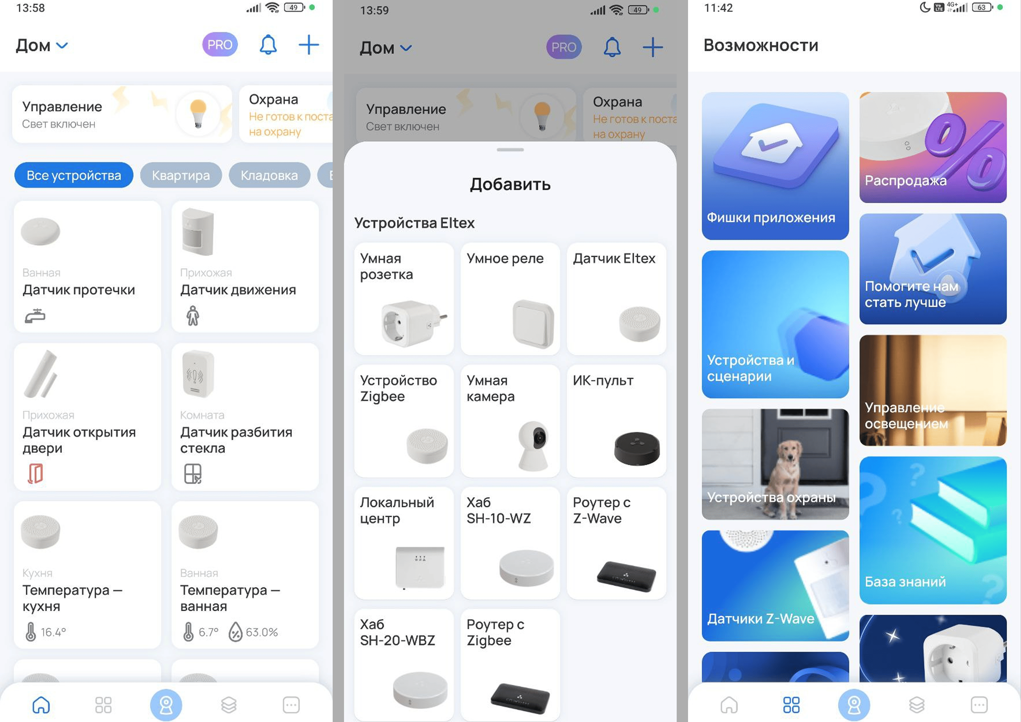 Eltex Home – мобильное приложение которое превращает управление умным домом в простой и комфортный процесс. Является частью экосистемы домашней автоматизации Eltex, куда также включены IoT-платформа ELIS, хабы и поддерживаемые смарт-устройства.