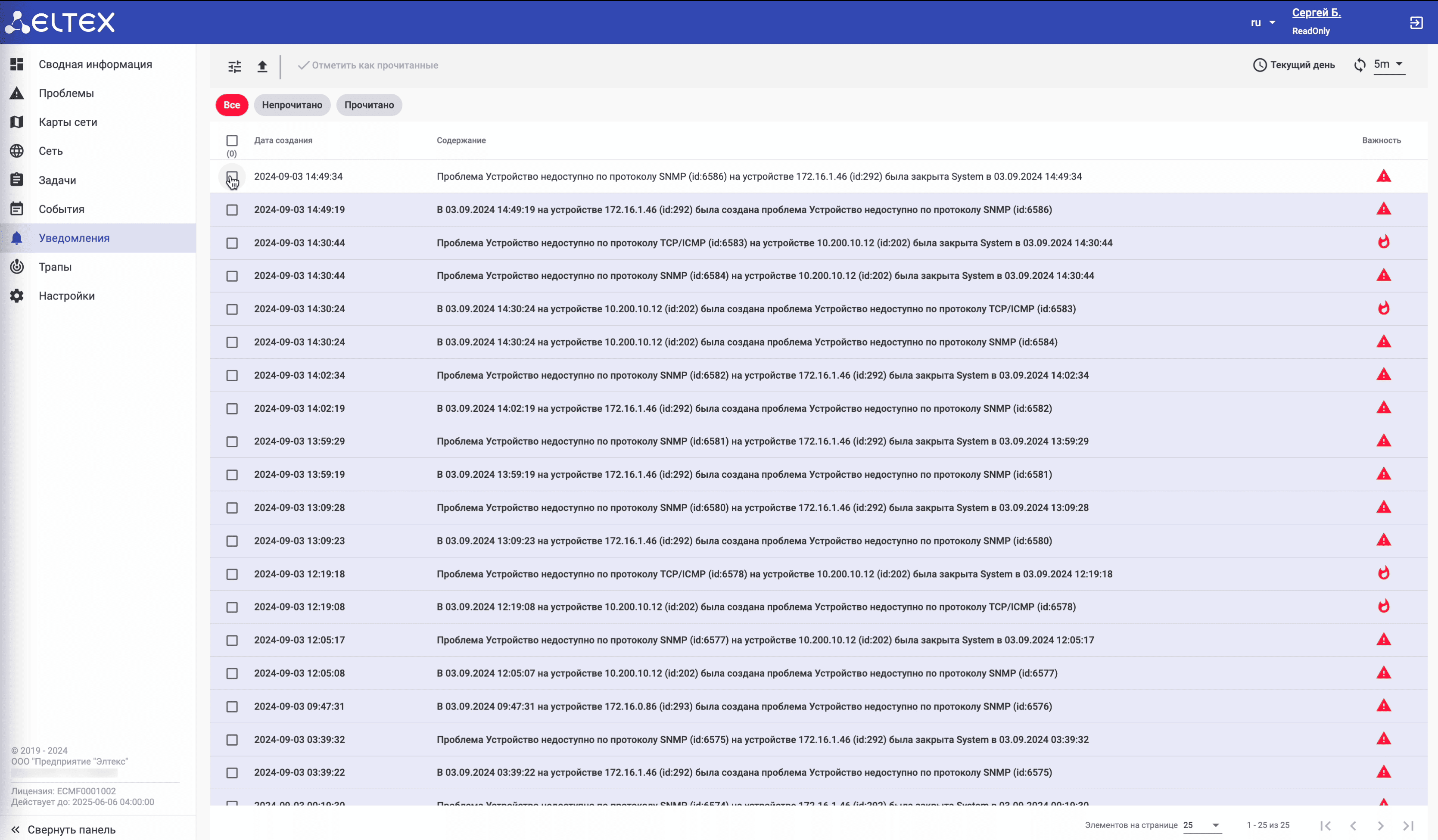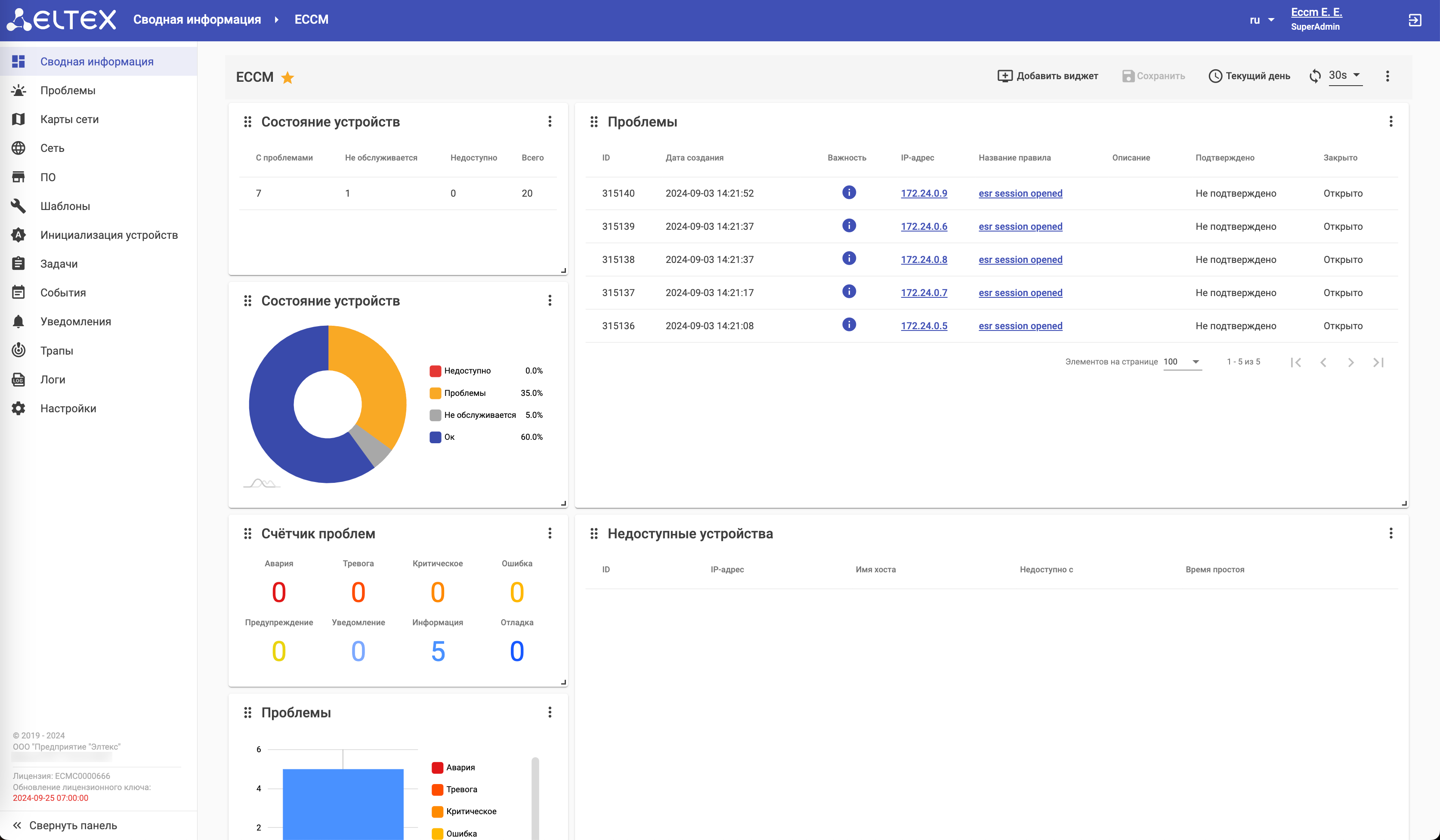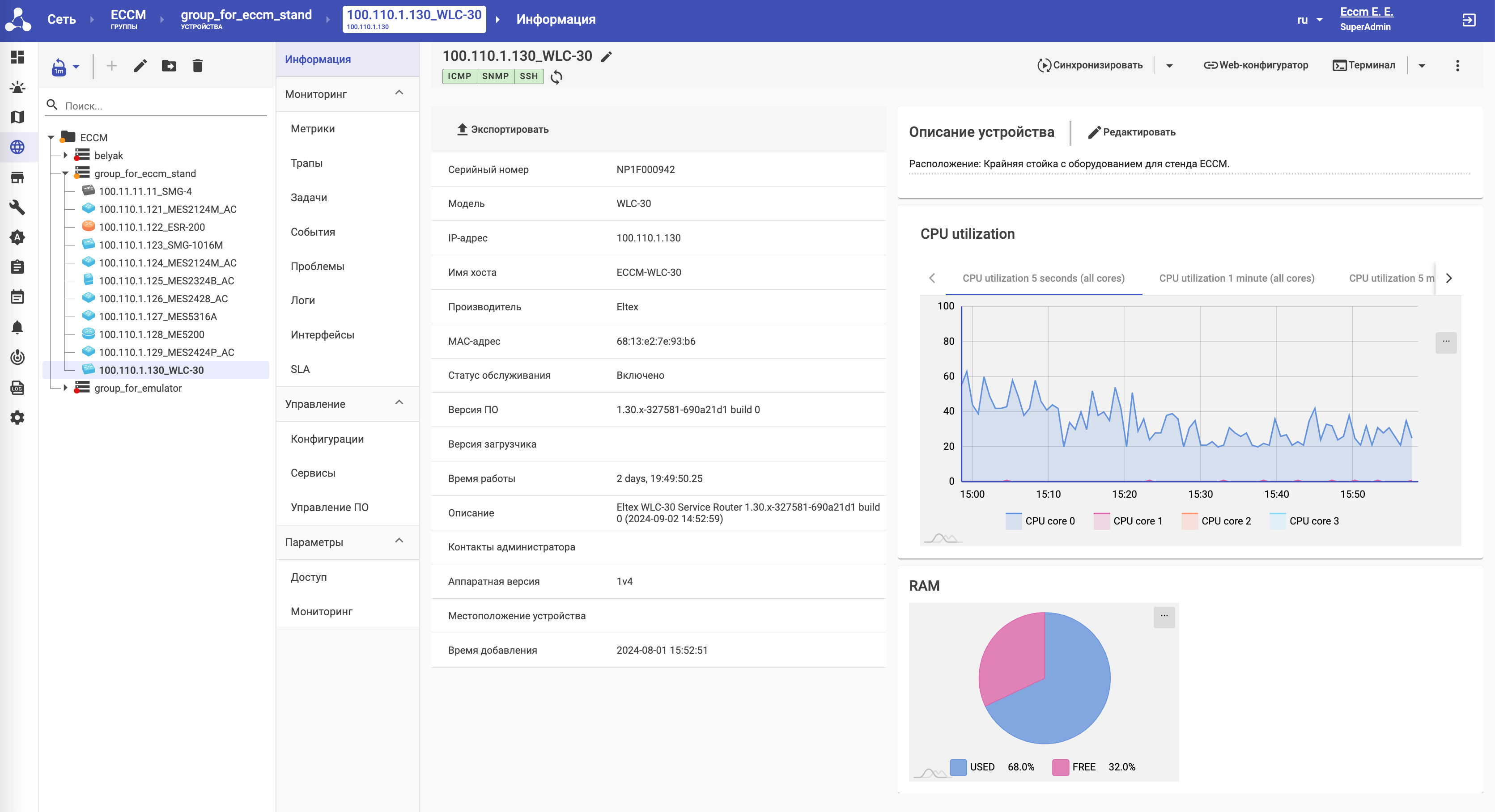 ECCM – система, предназначенная для инвентаризации, управления и мониторинга сетевого оборудования Eltex. Поможет автоматизировать рутинные задачи по конфигурированию и обновлению оборудования, осуществить непрерывный мониторинг работы сети для быстрого реагирования и устранения возникающих неисправностей. Система включена в Реестр российского программного обеспечения.