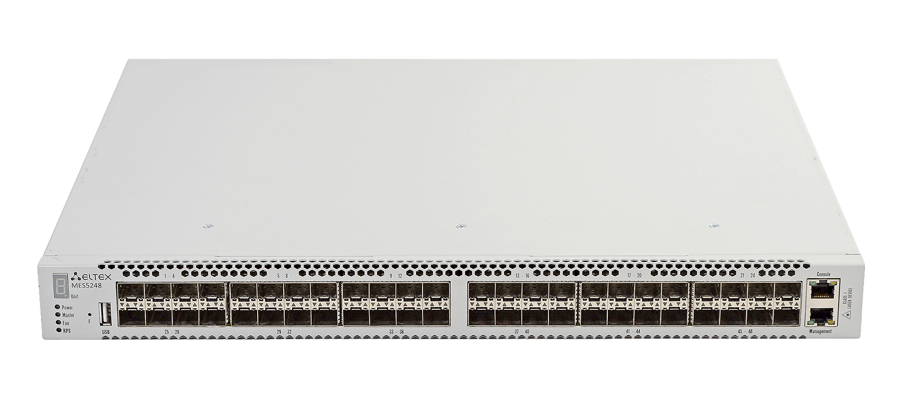 Коммутатор MES5248 оснащен интерфейсами 10GBASE-X и предназначен для использования в операторских сетях в качестве устройства агрегации и в центрах обработки данных (ЦОД) в качестве Top-of-Rack или End-of-Row коммутатора.