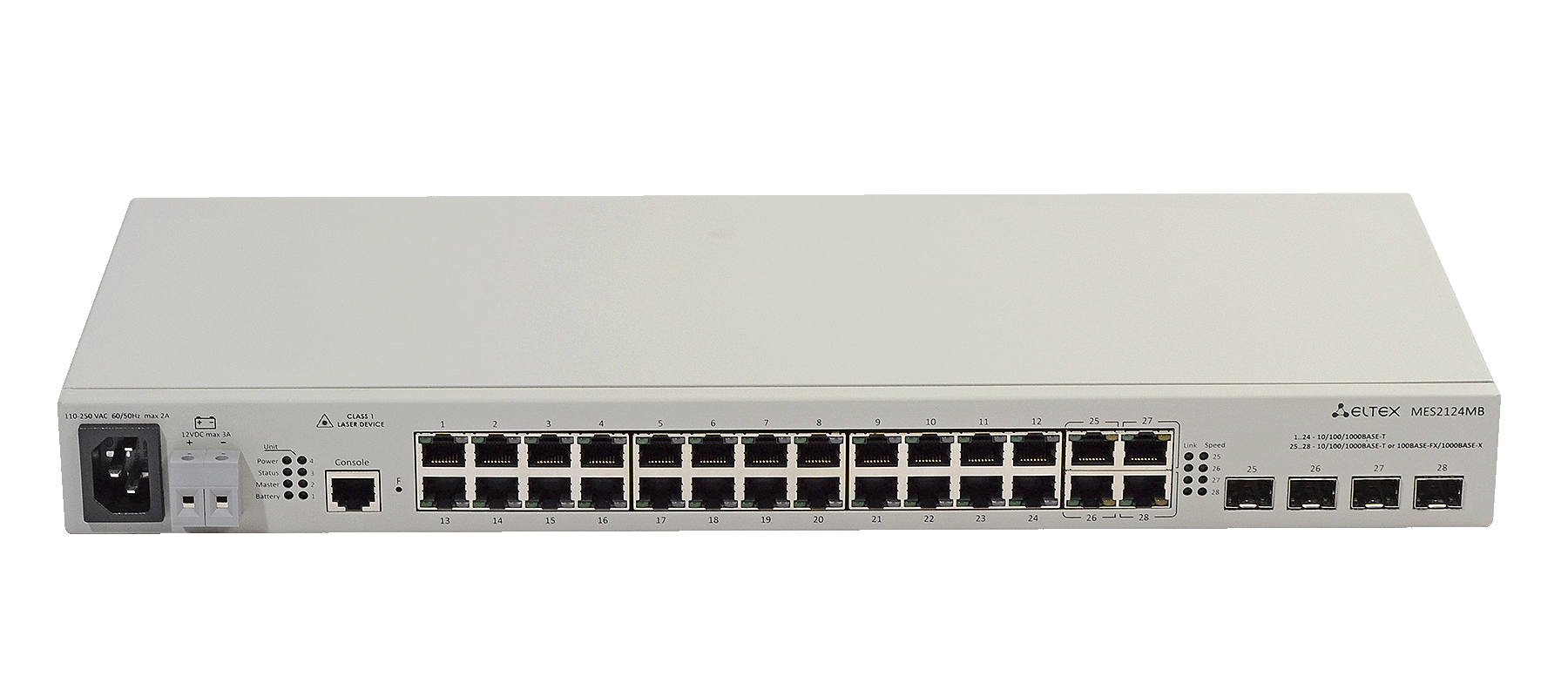 Коммутатор MES2124МВ подключает пользователей к сети крупных предприятий, предприятий малого и среднего бизнеса и к сетям операторов связи с помощью интерфейсов Fast и Gigabit Ethernet. Функциональные возможности коммутатора обеспечивают физическое стекирование, поддержку виртуальных локальных сетей, многоадресных групп рассылки и расширенные функции безопасности.