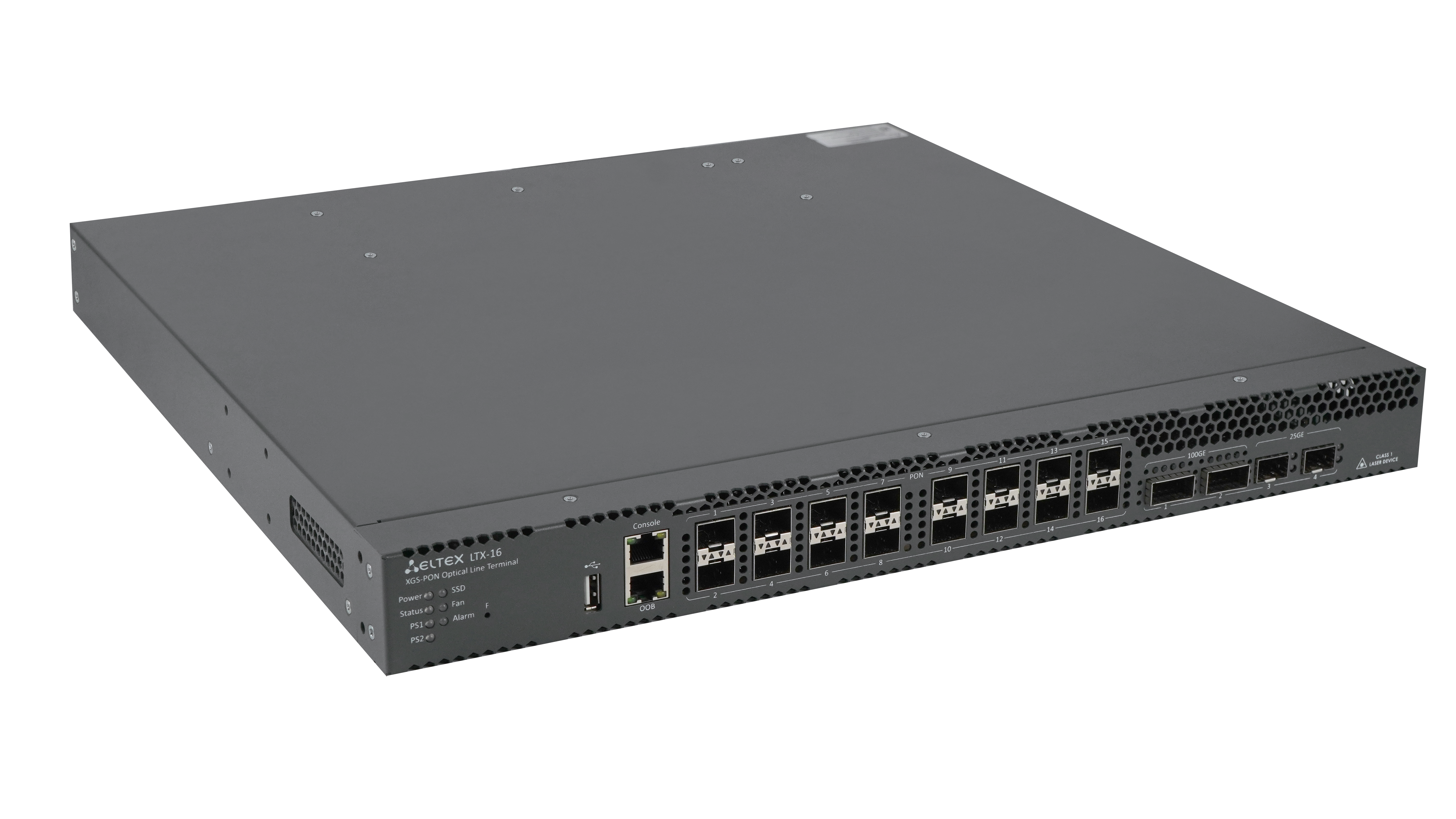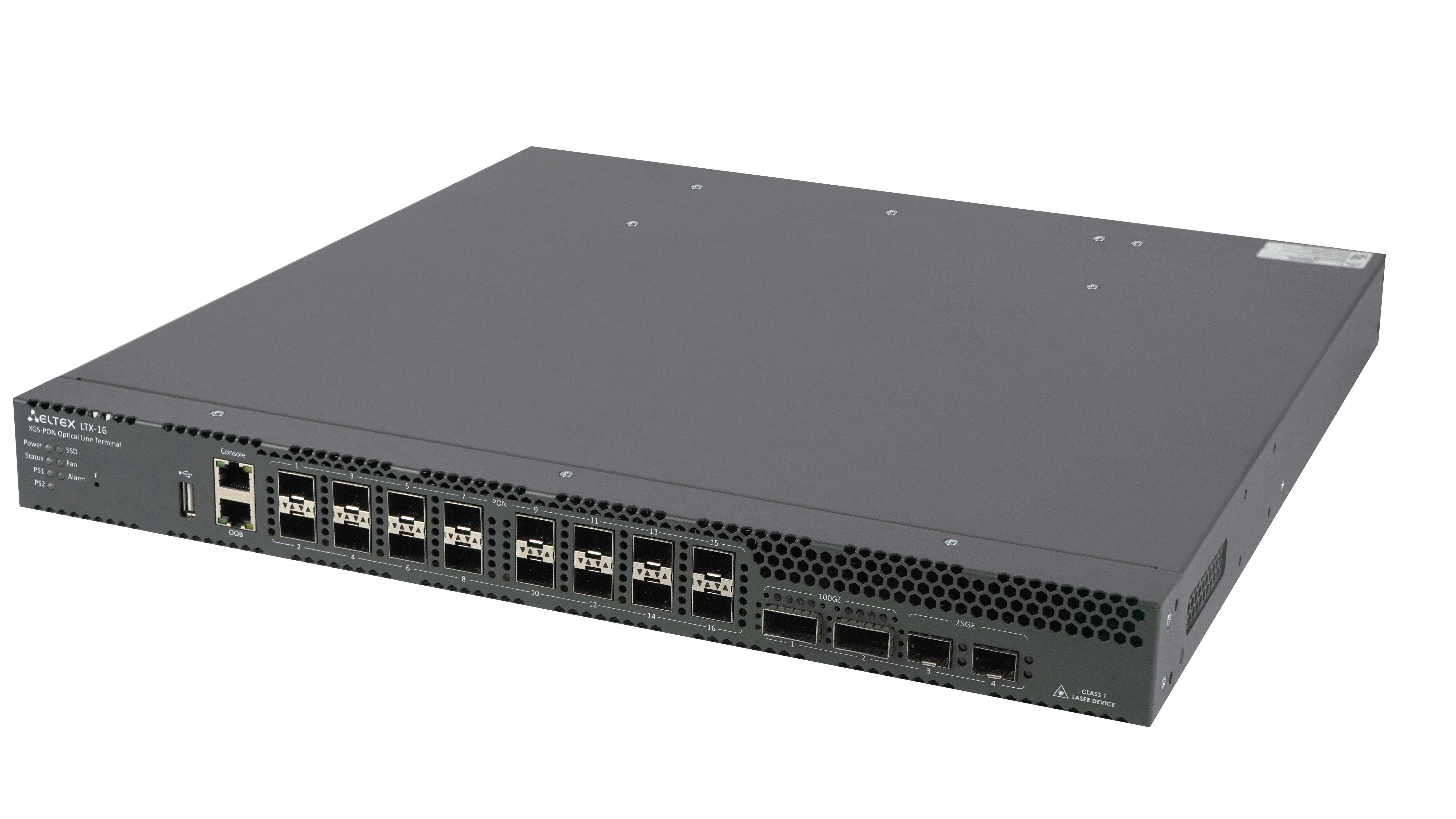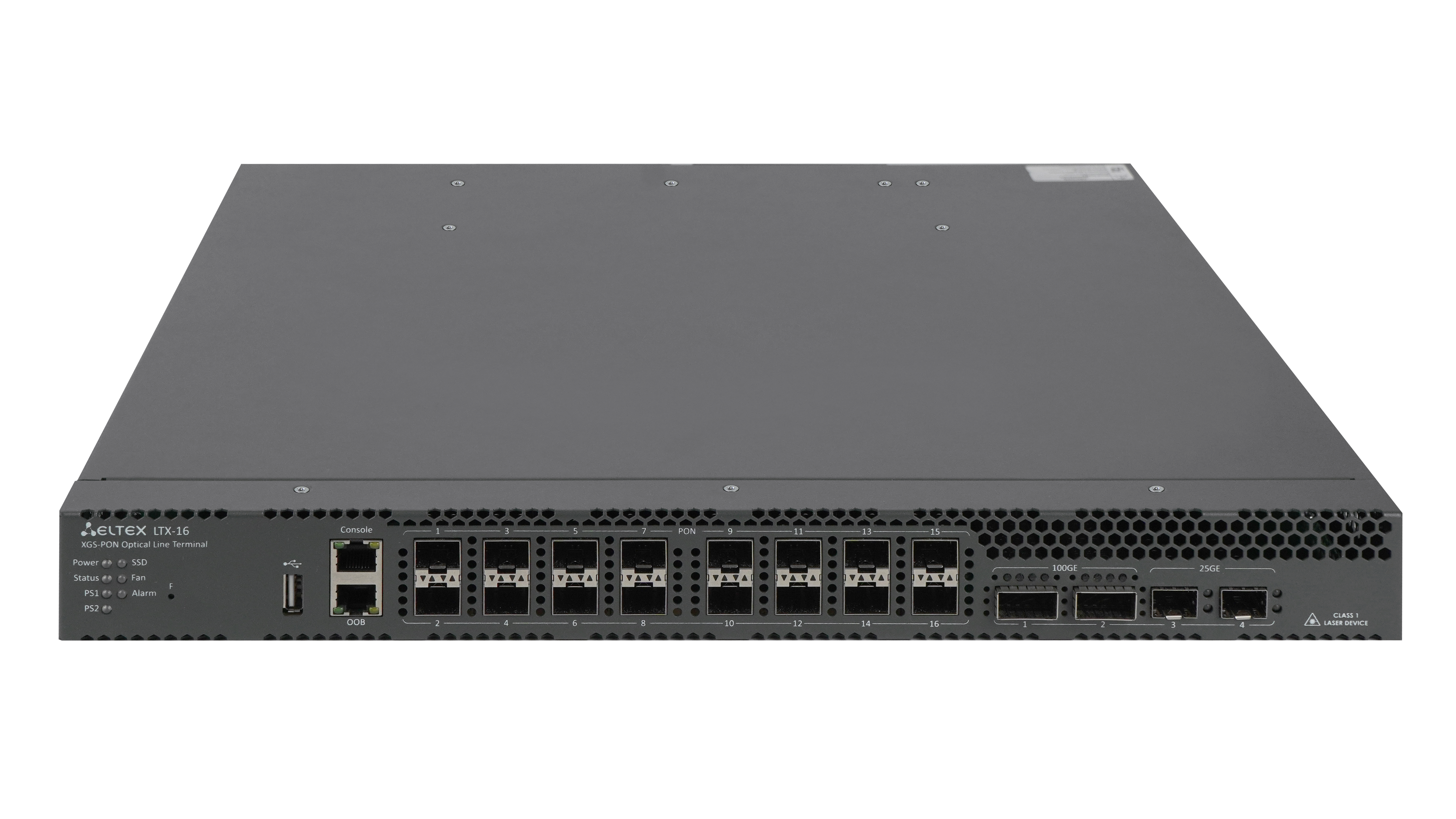 16хXGS-PON, 2х25/10/1GE (SFP28/SFP+/SFP), 2х100/40GE (QSFP28/QSFP+) |