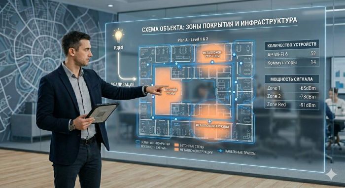 ИТ‑консалтинг: аудит, ТЗ, проектирование сложных зон, подбор оборудования без иллюзий. Помощь в цифровизации и масштабировании. Работаем от идеи до рабочих схем.