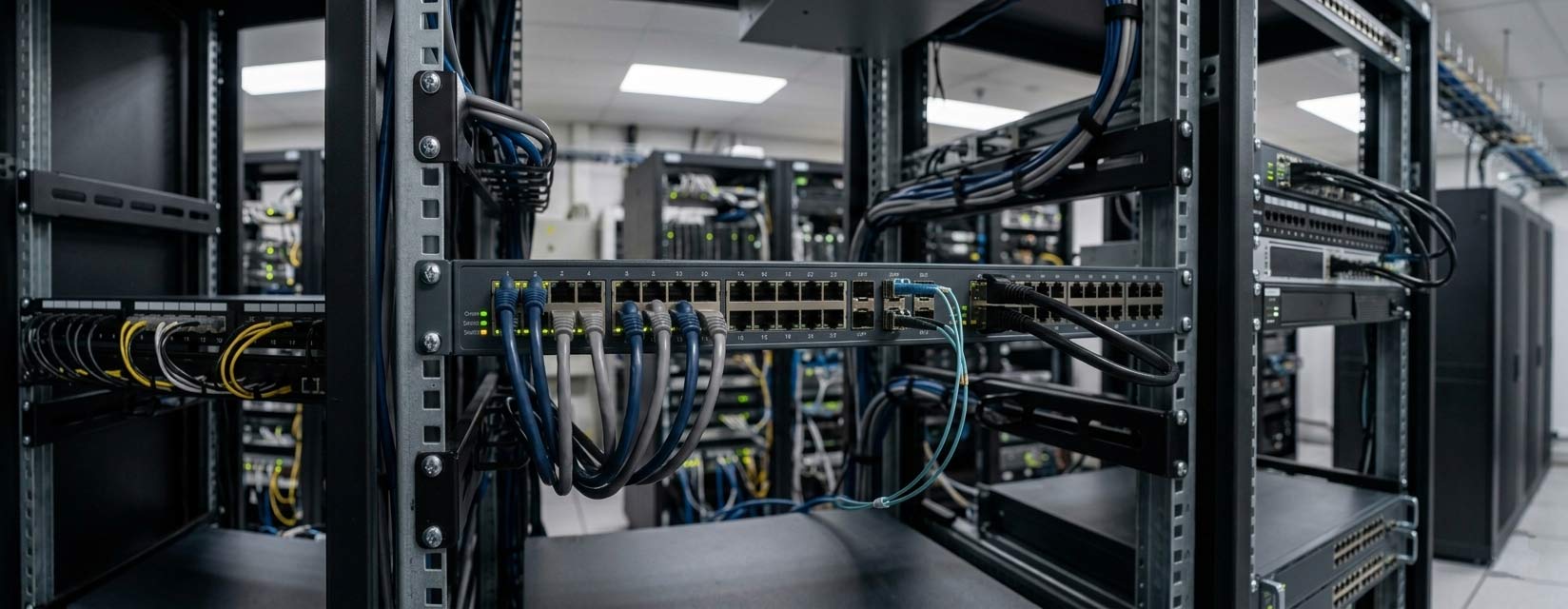 Часто путают эти два типа. Коммутатор доступа стоит ближе к пользователю — у него много портов (24–48), обычно меньшая пропускная способность backplane и нет поддержки сложной маршрутизации. Коммутатор агрегации — более мощный, с высокоскоростными аплинками (10 Гбит/с и выше), часто со стеком и поддержкой L3. Он собирает трафик от нескольких коммутаторов доступа и передаёт его в ядро сети. В крупной сети коммутаторы доступа подключаются к агрегирующим, а те — к ядерным.